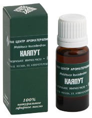 Эфирное масло Каяпута обладает сильным антисептическим, бактерицидным, противовоспалительным, спазмолитическим и обезболивающим действием, снимает отеки, улучшает процесс пищеварения. Рекомендуется применять при артритах, невралгии, переломах и растяжениях, отитах, зубной боли.