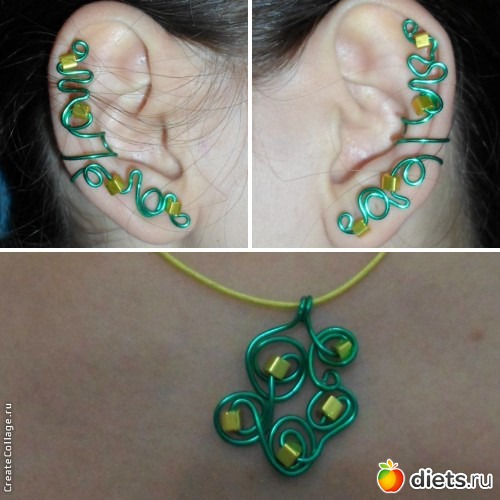 2. Салатовая паутинка. Набор сделан на подарок по примерному описанию. Медная проволока с покрытием серебряного цвета и чешские стеклянных бусин.