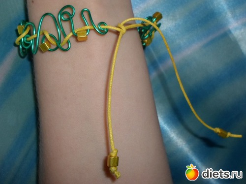 Всё вместе. Концы шнура для подвсеки не обработаны пока, но на них тоже будут висеть золотые бусины.