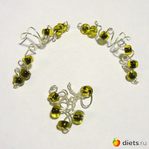 3. Солнце в ветвях. Набор сделан на алюминиевой проволоке (самая мягкая и нежная) с золотыми чешскими бусинами.