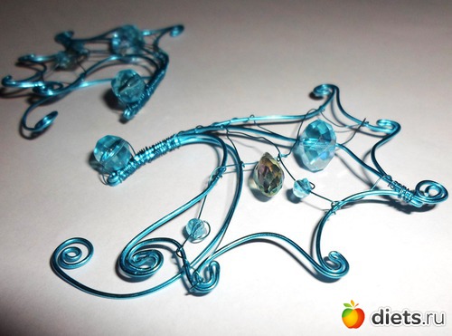 На закуску крылышки моего любимого цвета. Алюминиевая проволока, стеклянные гранёные бусины.