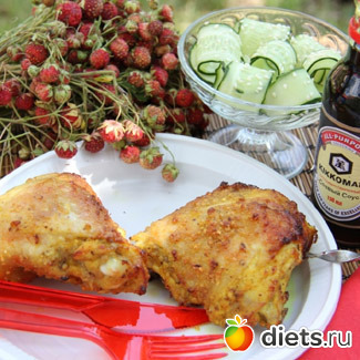Обжариваем курицу над углями до готовности (если мясо надрезать, то должен выделиться прзрачный сок).