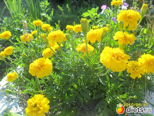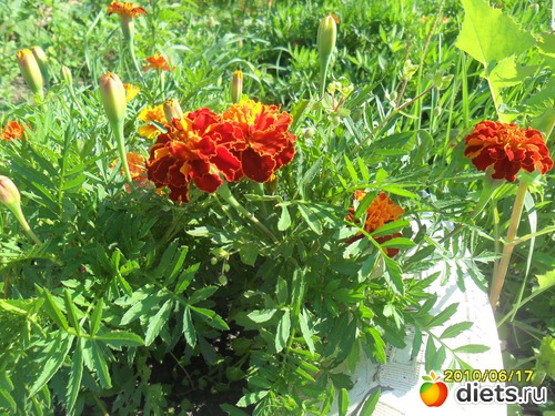 А это бархотки расцвели. Люблю я их. Неприхотливые и очень красивые.