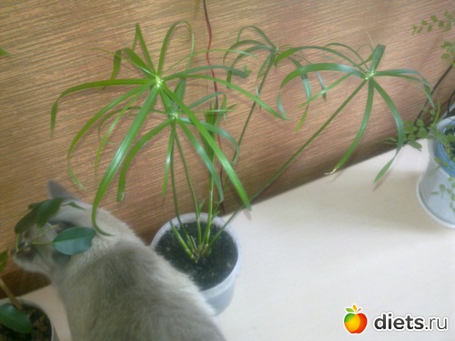 а совет купить кошачью травку может поможет..... у меня во дворе гуляет летом и не так жрет...