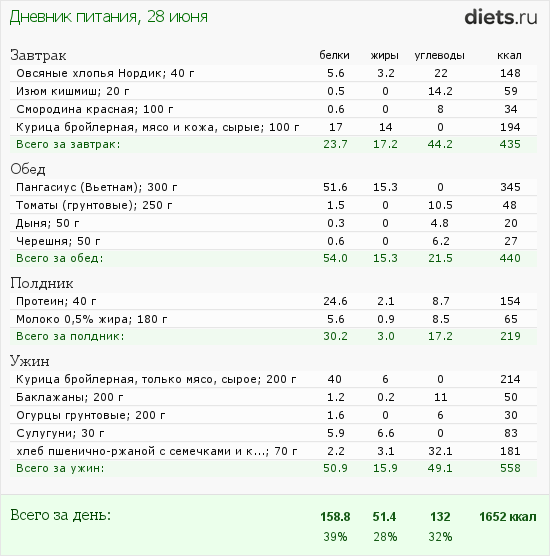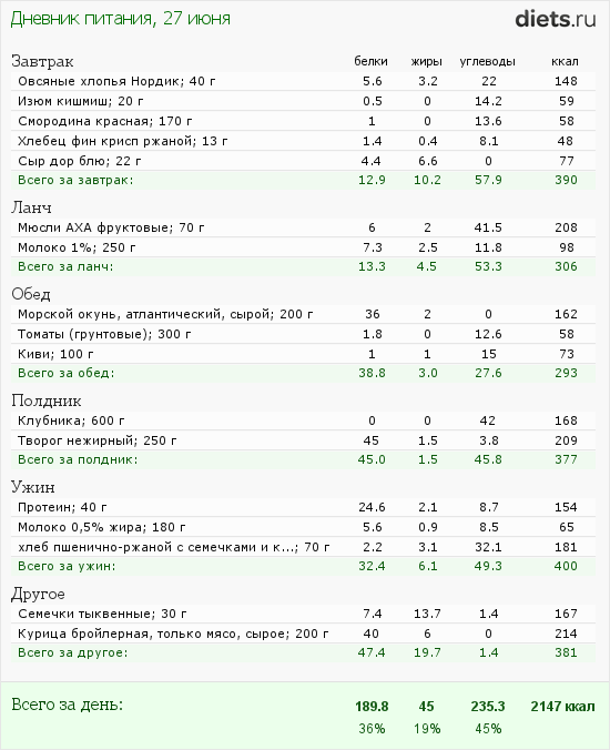 Как видите - стараюсь придерживаться питания с соотношением БЖУ 40-20-40 %, кушать побольше белка, если жир - то только полезный, никаких шоколадных поблажек, ну и калорийность в районе 2000-2200 ккал. Любители диеты Любимая наверно уже попадали в обморок