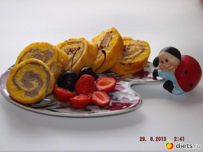 Крем - 3 ст. л. обезжиренного мягкого творога + 1 ст.л. обезжиренного какао + сах.зам по вкусу. Все взбить.