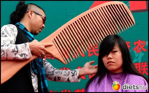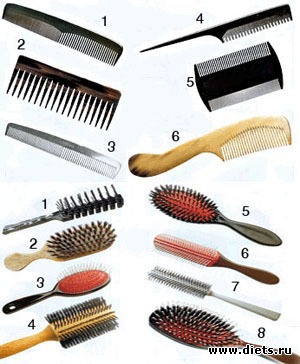 Расчесывание длинных волос надо начинать с концов, коротких - от корня. Для расчесывания коротких волос надо пользоваться только гребенкой. Волосы длиннее 25-35 см лучше расчесывать сначала щеткой, затем гребенкой. Расчесывание волос щеткой безболезненно приводит в порядок запутанные длинные волосы. Если волосы очень длинны, надо охватить волосы туго вблизи головы прядь за прядью, и проводить по ним щеткой до концов. После такой подготовки волосы легко расчесываются и укладываются гребнем. Необходимо следить, чтобы при расчесывании не было вытягивания волос.