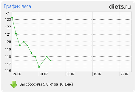 ...после того как на диете лепестков в последний день вес стремительно ушел, он так же вернулся на следующий день, не весь конечно, но 118,0 на весах я увидела ( видимо точно баня+последний фруктовый лепесток много выгнали воду), немного конечно расстроилась, так как калории продолжаю считать, на сегодня у меня отвес -500. надеюсь к началу следующей недели, а я планирую с понедельника второй круг лепестков, сбросить еще хотя бы 500. Калории считаю, чувствую себя легче