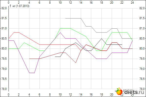 Для проверки весов перешел на рисовую диету с дневной калорийностью 950 ккал. Первый день вес уменьшился заметно. Далее вес стал гулять в течение дня. Весы показывали даже больше, чем в предыдущий день. И только на пятый день рисовой диеты вес стал заметно меньше