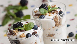 Завтрак: 150 г йогурта с сухофруктами (около 20 г),100 мл сока.