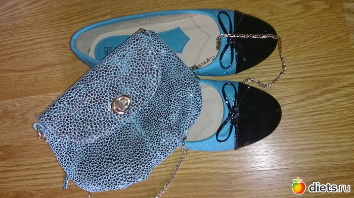 Балетки к сумочке получились абсолютно случайно, я не подбирала из, просто интуитивно вышло - взгляд сразу упал на эту пару, оказалось, что размер мой, так и получился летний ансамбль, а самое классное знаете что? Эти две вещи можно сочетать практически с любой одеждой, любого цвета, и смотрится очень ярко, стильно, а главное - по-летнему!