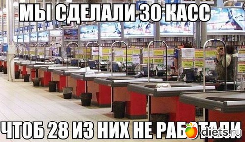Diets.ru - Мы сделали 30 касс, чтобы 28 из них не работали.