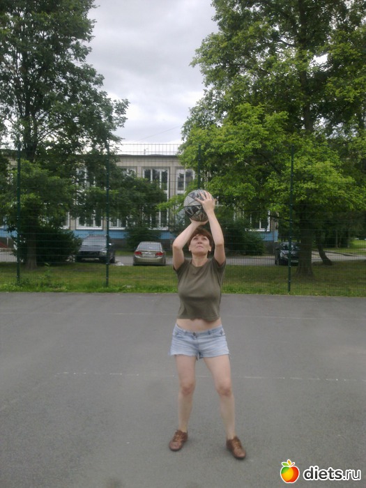 У меня во дворе у самой кольцо и мячик,тренируюсь,в ноябре соревнования районные