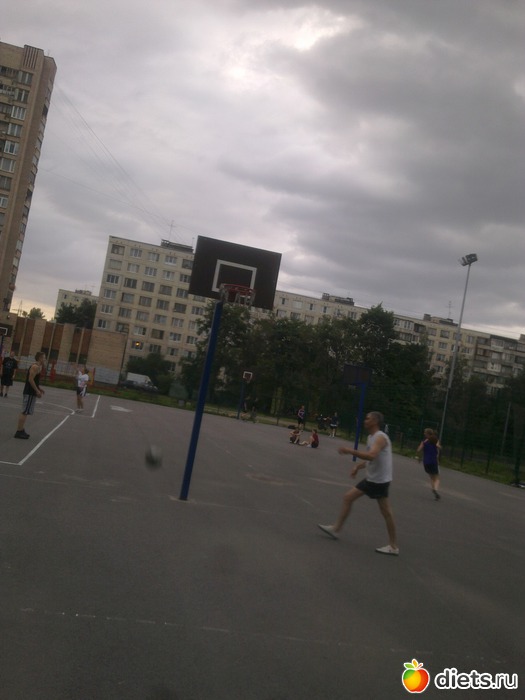 у нас во дворе есть не большая площадка под баскетбол) но она пустует)зато огромная площадка под волейбол) там и до 2 ночи играют люди)) очень активно и весело)) на я туда не решаюсь . только с балкона на них смотрю