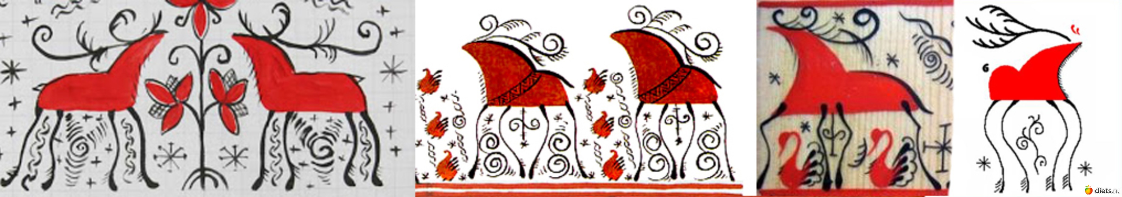 Олень приносит счастье, веселье, связан с праздником громовика Ильи-пророка (древний аграрно-охотничий культ).