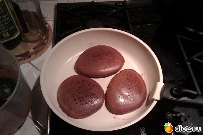 Все минуты 3 мешаем миксером, и выпекаем оладушки, причем сковородку сразу закрываю крышкой….потом переворачиваю оладьи и опять пеку под крышкой. У меня получается 6 оладушков, пеку за 2 раза. Пеку на керамической сковороде вообще без масла! Очень довольна, кстати, этими сковородками, брала корейские Fissman, ничего не пристает и не подгорает, делаю по утрам омлет теперь с овощами/грибами тоже совсем без масла, оладьи вот эти, мясо/рыбу обжариваю.