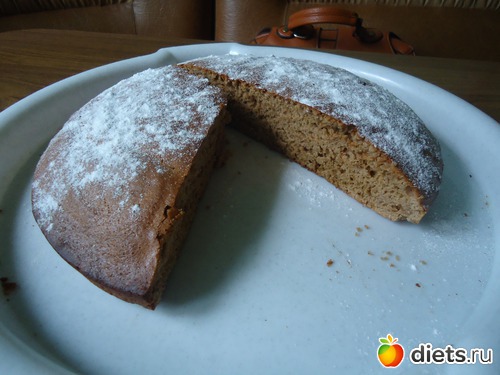 Затем коврижку вынимаем, слегка остужаем и выкладываем на блюдо. Я просто посыпала сверху сахарной пудрой, а можно полить вареньем, украсить взбитыми сливками, свежими ягодами. Можно разрезать её и промазать любым кремом, шоколадом...в общем, всем, на что хватит вашей фантазии!