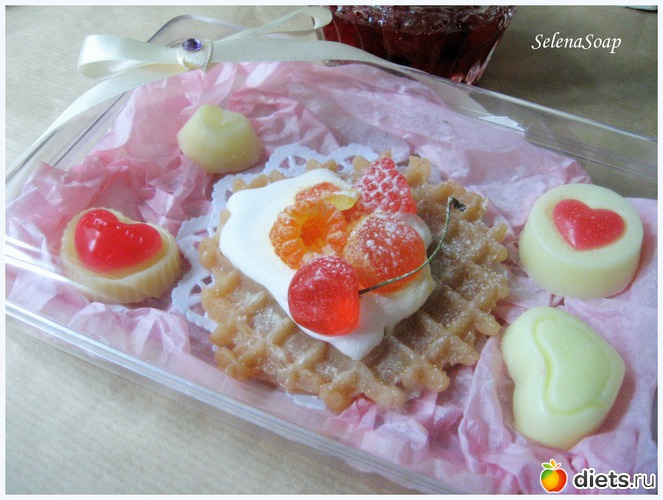 Мне тут вспомнилось, как-то моя знакомая участвовала в каком-то конкурсе и решила свой талант показать, вынесла жюри наборчики мыла в виде пирожных на блюдечках. Так они его ели сидели и плевались потом
