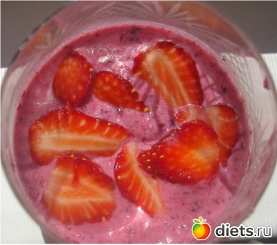 Если у вас нет дома никаких замороженных фруктов не отчаивайтесь. Подойдут даже яблоки или бананы, вообщем всё что вы любите, только предварительно эти фрукты вам прийдётся порезать кусочками и заморозить (почему-то необходимы именно ЗАМОРОЖЕННЫЕ фрукты
