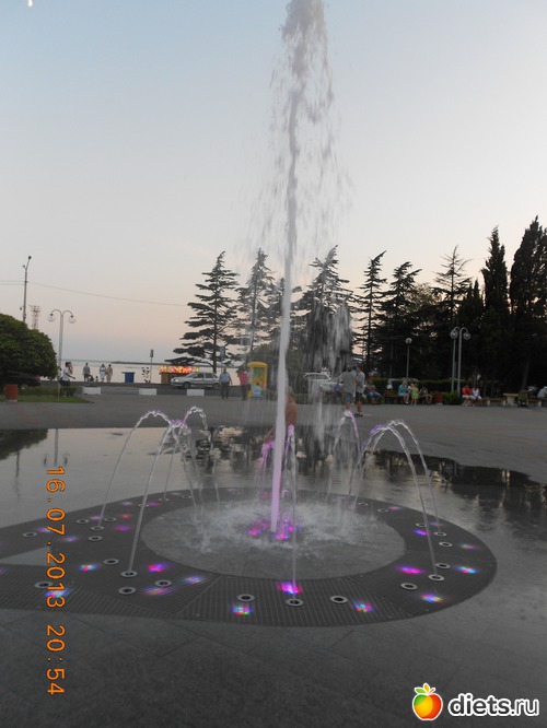 вот такой веселенький фонтан, вечером он цветной и играет водой под музыку