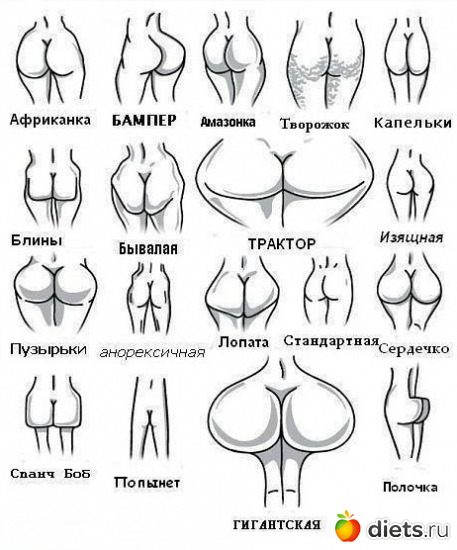 кстати, вот там на фото есть "гигантская", я однажды видела такую, вот прям в точности как на картинке, огромная, широкая попа, тонкая талия и тоненькие ножки- девушка выглядела как "рюмка"