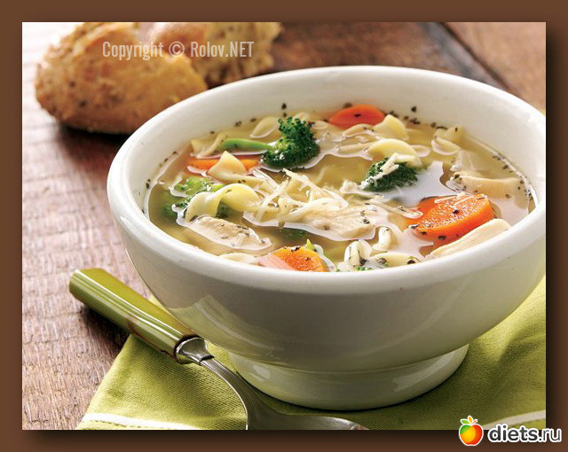 6 средних луковиц, несколько (по вкусу) помидор, можно консервированных, небольшой качан капусты, 2 зеленых перца, 1 пучок сельдерея (сельдерей – самое главное), 1 кубик овощного бульона. Порежьте овощи на мелкие или средние кусочки и залейте водой. Приправьте солью, перцем и, если хотите, карри или острым соусом. Кипятите на большом огне 10 минут, затем сделайте маленький огонь и продолжайте варить, пока овощи не станут мягкими. Этот суп можно есть в любое время, когда вы голодны. Ешьте его столько, сколько хотите, и тогда, когда хотите – суп не добавляет калорий. Наполните им с утра термос, чтобы прихватить с собой, если в течении дня вы будете находиться вне дома или отправляетесь в поездку. Однако не следует питаться исключительно этим супом. Рацион необходимо пополнять другими компонентами.