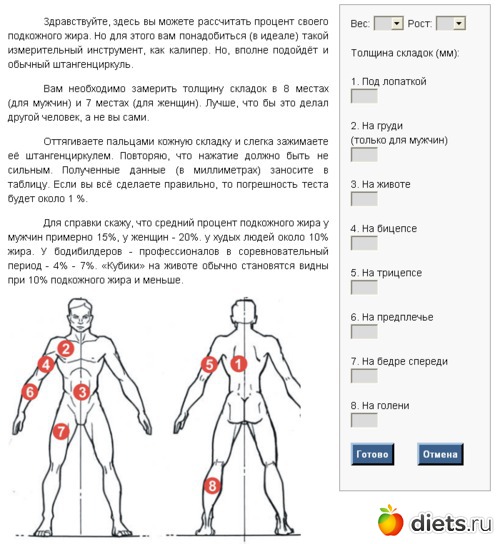 и сантиметровой ленты. На сайте твой тренер есть отличный калькулятор. Его окно выглядит так: