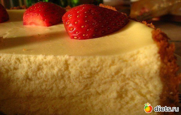 Очень легкий, неприторный и приятный чизкейк. Когда хочется выпечку на диете, такой чизкейк придется как нельзя кстати. По вкусу получается именно чизкейк, хоть и совсем нежирный (а не запеканка и т.д.)\