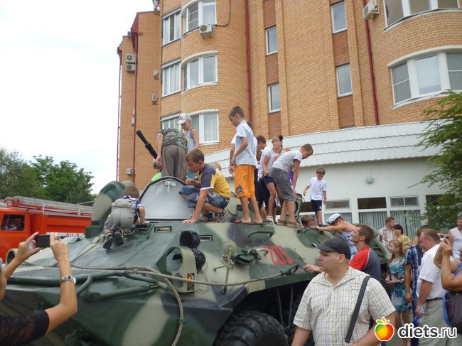 Сегодня воскресенье, день ВМФ. И мы с сыном решили прогуляться по набережной Волги. Вернее, решила я и поставила сына в известность. К нам решила присоединиться и моя мама с племянником. Утром мы встретились и пошли гулять. Народу было очень много. Погода благоприятствовала прогулке. Солнышко скрылось за тучками и было не так жарко. Еще и ветерок с Волги протягивал. Прошлись мы по набережной, дошли до площади у памятнику Петру I и там застряли надолго. Здесь была выставка техники, используемой Каспийской флотилией и МЧС. И детям разрешили на ней полазить. Наши дети отрывались ровно час, пока мы не позвали их. Даже мой сынок, который в последнее время старается показать, что он взрослый, не удержался и присоединился к малышне. Удовольствия детки получили море. Потом прогулялись через центр города и закончили прогулку в кафе. Да, обед получился не диетический, но подобное у нас бывает очень и очень редко, поэтому я решила не заморачиваться.
