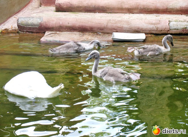 Естественно, что первым пунктом был его вольер. Но по пути было столько много интересного. Например, маленький лебедята. Или как их там называют?