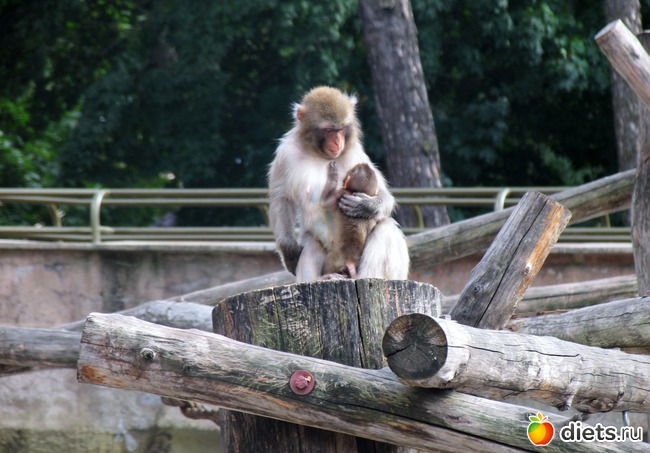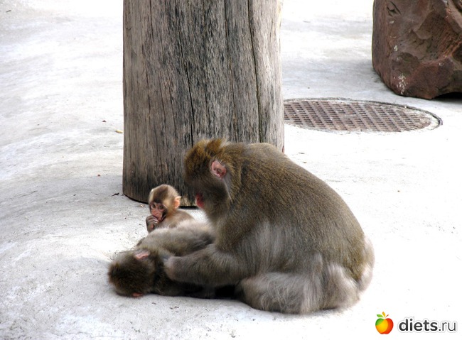 Напротив "енотика" был вольер с макаками. Классные такие. Заботливые. Всё друг у друга чего-то чесали, ковыряли, вытаскивали, друг к другу в уши, нос, под шерсть заглядывали.