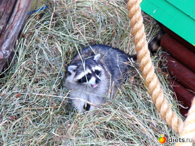 И самое главное! Когда возвращались к выходу, мы увидели его! Енотика. И не только попу, но и мордочку, и хвостик, и даже лапки, что-то разгребающие в соломе.