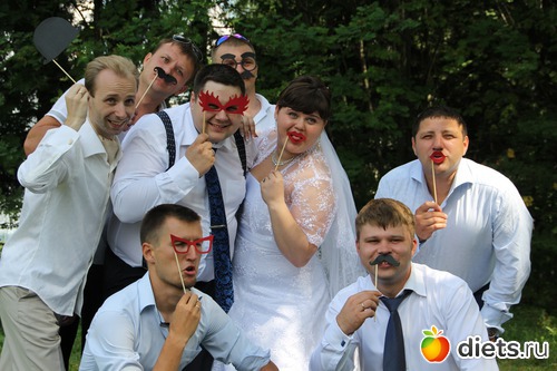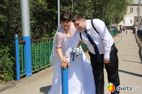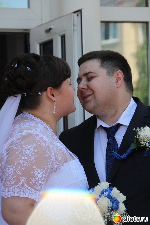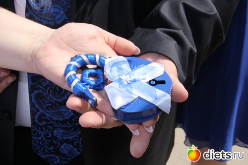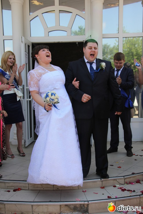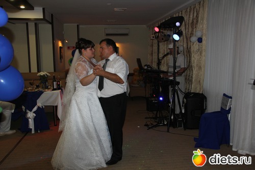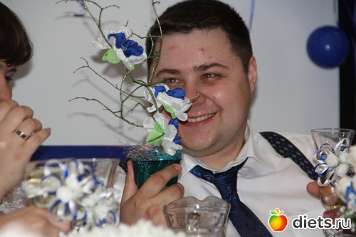и мне понравилось, как у вас свадьба продумана в деталях, в том плане что так ненавязчиво синий цвет вклинили - узор на галстуке, букетк, шарики, торт, фонарик, загогулинка на ноге, даже столбик голубой нашли