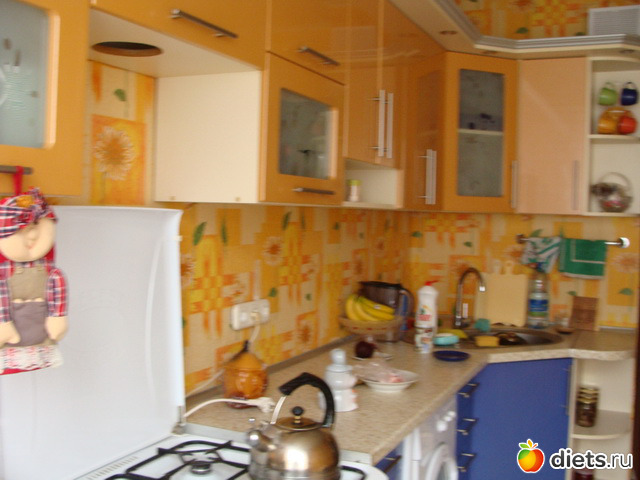 и от обоев я бы избавилась - жутко яркие. вместе с ярким гарнитуром - тяжело.