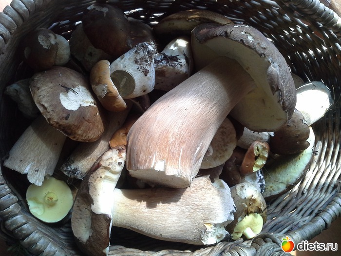 А это корзина белых грибов. В предпоследний день с утра с мамой сходили в лес, погуляли всего 2 часа и 2 следующих дня кушали наивкуснейшую густую грибницу