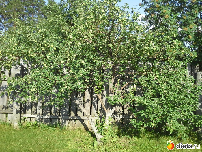 А яблок-то сколько! Они еще далеко не сформировались, а ветки уже гнутся и ломаются