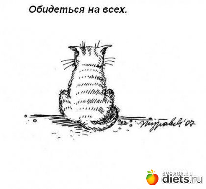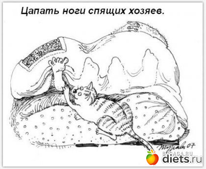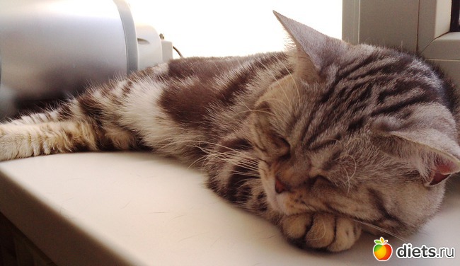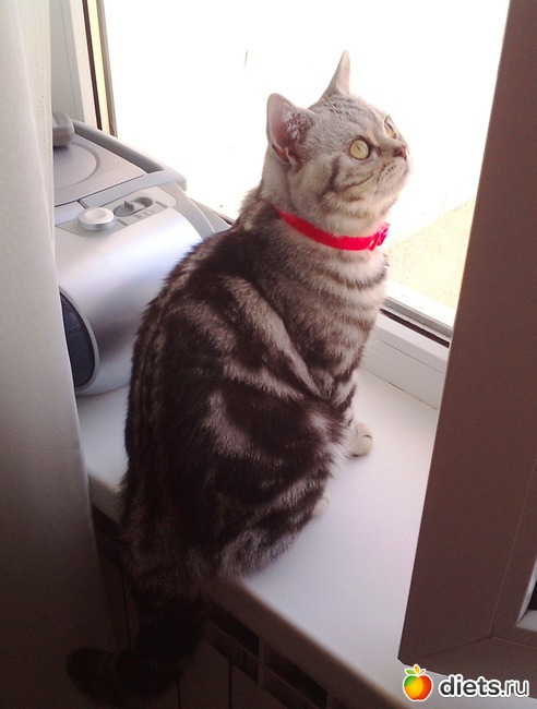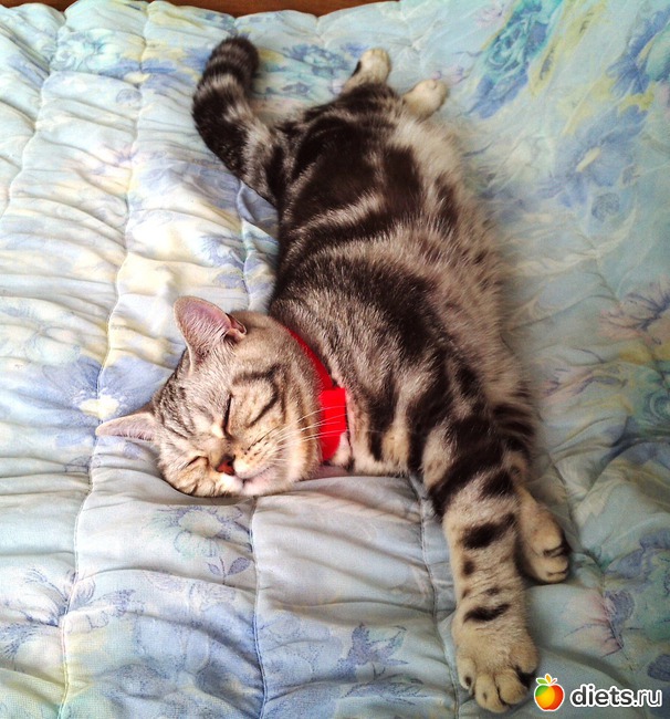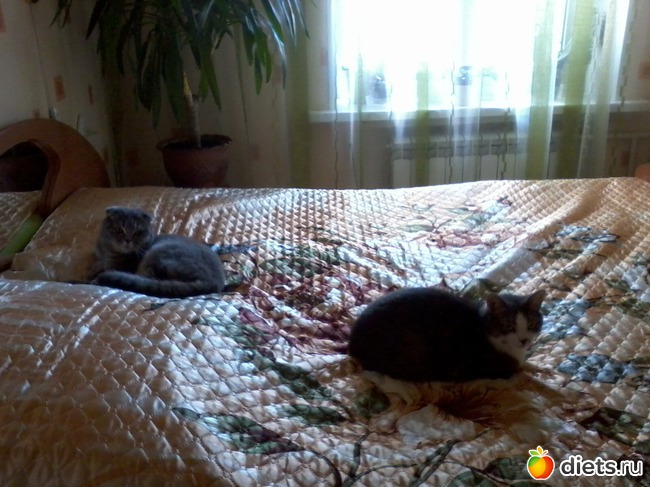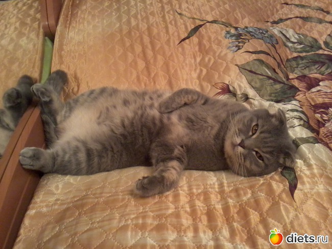 Когда прогоняю, ложиться на кровать и так смотрит мол:"Посмотри какой я толстенький,пузатенький и меня все любят!!!А оно тебе надо - худеть???"
