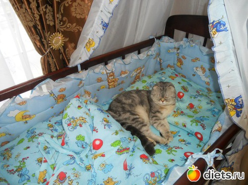 А человеческий детёныш... Что ж, так и быть, пусть тоже в кроватке спит