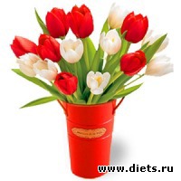 С самого утра нас ждал сюрприз в виде букетика тюльпанов на столах в кружках для кофе (это тоже была чать подарка), а потом директор принес нам каждой по коробочке моих ЛЮБИМЫХ но жутко вредных конфет Изабелла (там такая твердая кремовая начинка и чернослив). А еще коробку пироженных. Ну, к кремовым пироженкам я уже давно охладела, а вот конфеты...