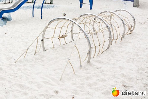 Вообще, комплекс с мостиком можно продолжить полосой препятствий. Например, таким веревочным мостом: