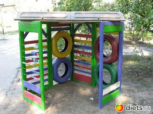 Последняя даже закрывается - видно, что скамеечки складываются, образуя крышку. А в первой части можно устроить хранилище уличных игрушек.
