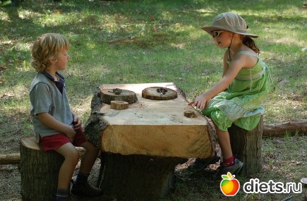 скамейки из бревен (на которых можно сидеть, а можно и лазать)
