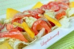 Апельсин нужно разделить на дольки, из которых извлечь мякоть и измельчить. Измельченную мякоть дыни нужно перемешать с мелко нарезанной мякотью апельсина. Клубнику нужно нарезать кусочками и тоже добавить в полученную смесь. Семгу нужно нарезать полосками, а листочки мяты измельчить. Все подготовленные ингредиенты нужно перемешать и заправить апельсиновым соком.