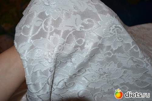 ткань молочная, не белая, атлас с гипюром сверху, очень нежно смотрится..