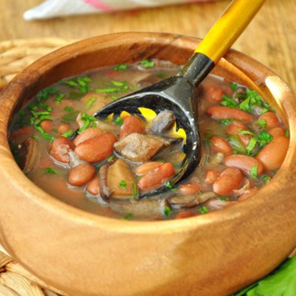 Добавить грибы к бульону с фасолью и фасолевым пюре.