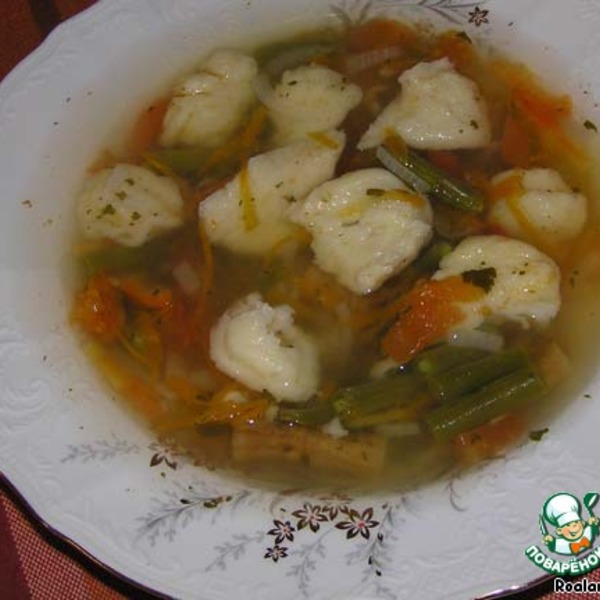 5. Как только суп закипит, начинаем чайной ложкой опускать клецки.