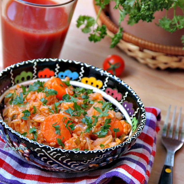 9. Мой муж - небольшой ценитель овощей и риса - оценил это блюдо на "отлично", но заметил, что сюда отлично бы подошли копчёные рёбрышки (или кусочки бекона, я так думаю)!