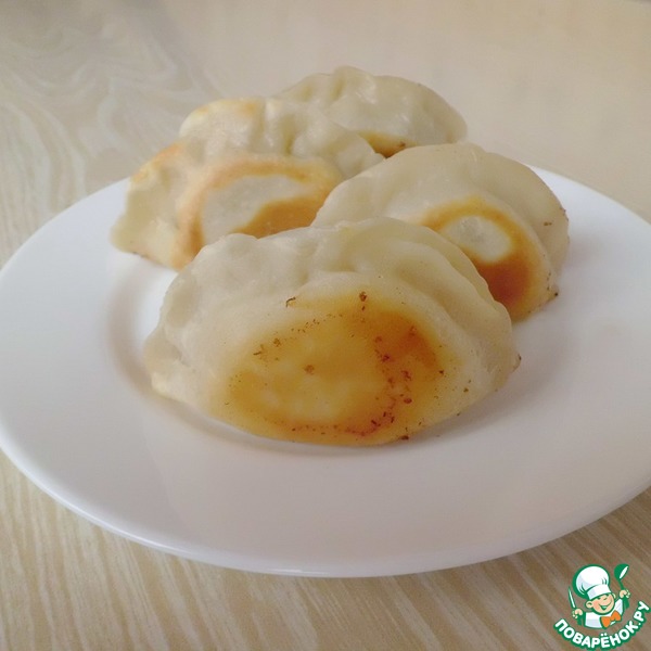 6. Складываем как обычный пельмень. Тщательно скрепляем кончики и слегка, без фанатизма, сдавливаем ладонями, приплющиваем)))