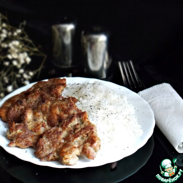 4. Теперь, когда нам надо покушать, мы сначала ставим воду для риса, солим и доводим до кипения. Кладем туда пакетики с нашим рисом от "Мистраль" и варим. Ну а пока он варится, мы успеем накрыть на стол. Затем наливаем на сковороду масло, греем и обжариваем мясо с двух сторон по 1,5-2 мин. до румяной корочки, раскладывая в один слой. Этого времени обычно достаточно, чтобы оно прожарилось.