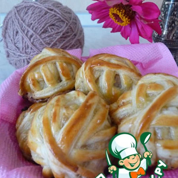 4. "Клубочки" складываем на противень, обмазываем взбитым желтком и выпекаем в духовке при 180-200 гр до готовности.